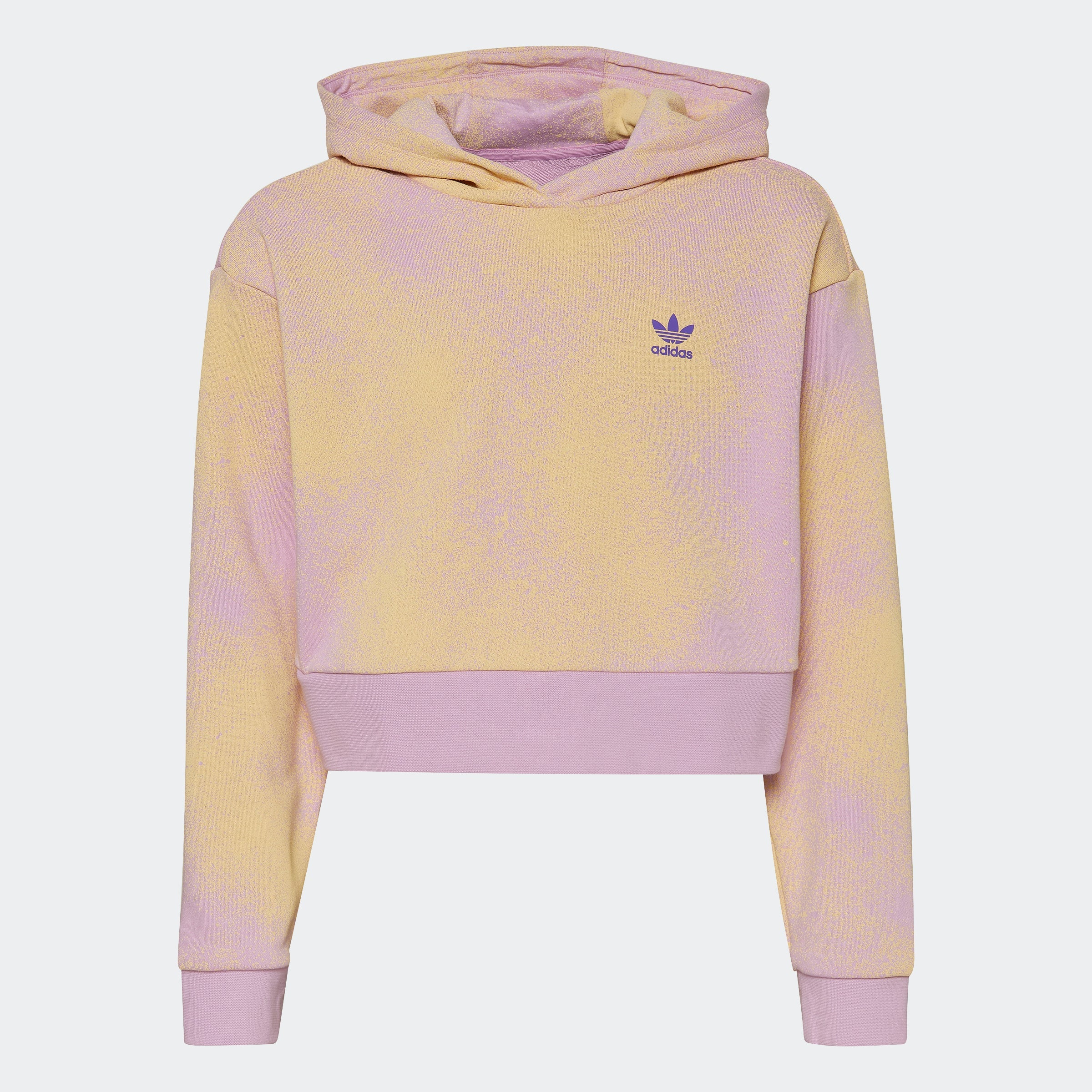 Look closely at the design of this crop adidas hoodie for juniors, and you'll see a kaleidoscope of color flowing and fusing with ease. Drawing inspiration from traditional tie-dye techniques, it has a loose fit that's perfect to style and easygoing for everyday wear. A soft cotton blend is soft and inviting, and the crop cut layers well with just about any look. Our cotton products support more sustainable cotton farming.