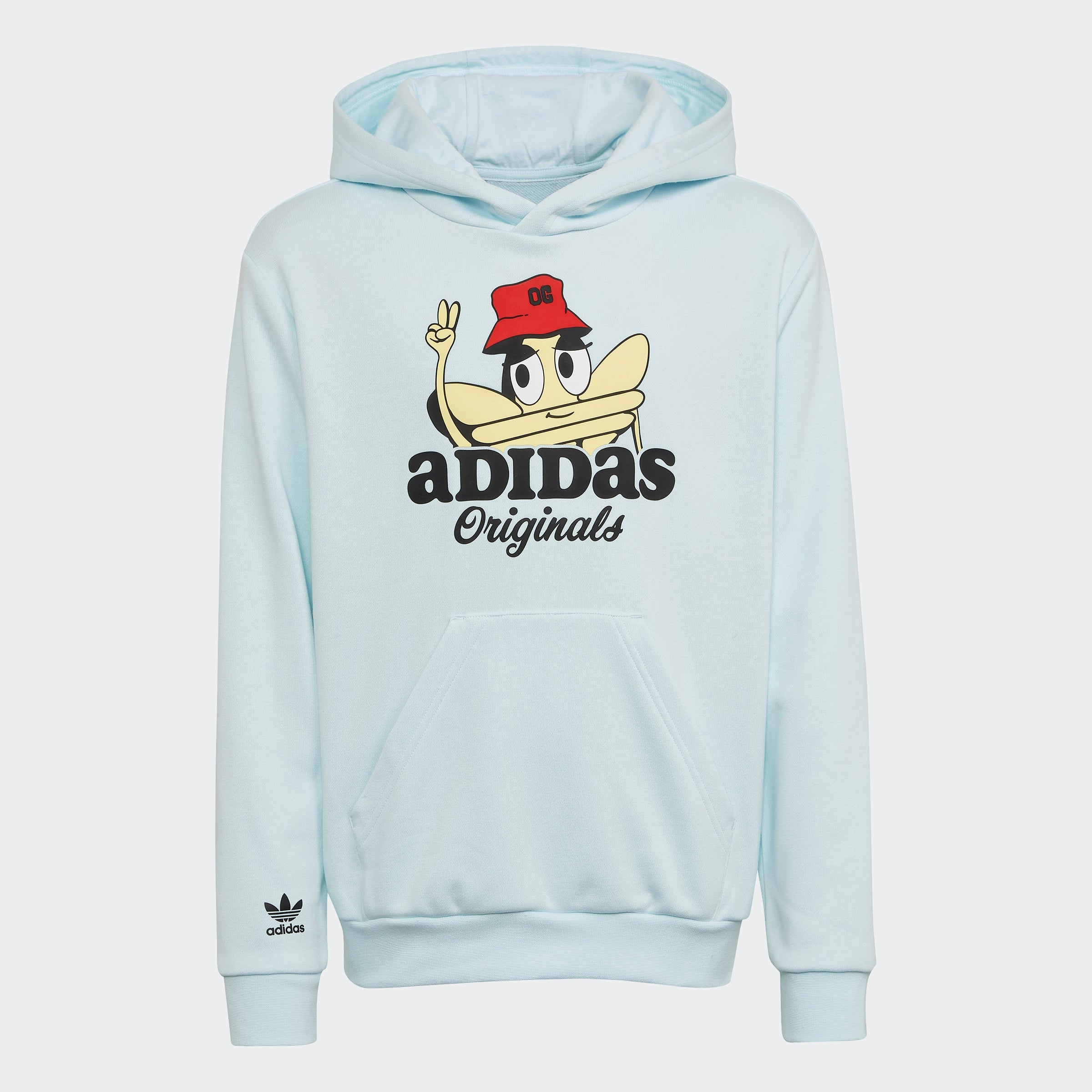 Strike a pose and greet the day like the cheery Trefoil on this playful adidas hoodie for juniors. A super-soft blend of cotton and French terry mixes durability and comfort, and a loose fit lets you take on the day with freedom of movement. The kangaroo pocket offers a place to put your hands, and the hood fits just right to keep you warm whenever you need it. Our cotton products support more sustainable cotton farming.